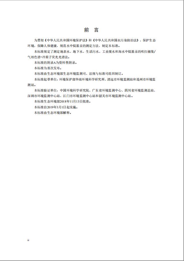 本標準規定了地表水測定、地下水測定、生活污水檢測、工業廢水檢測和海水中烷基汞的吹掃捕集/氣相色譜-冷原子熒光光譜法。本標準的附錄A為資料性附錄。 本標準為首次發布。