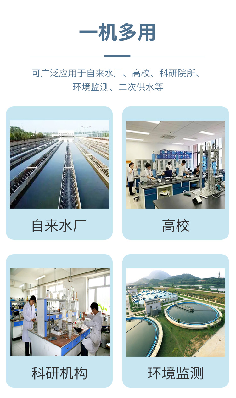 本儀器可用于測定飲用水中的消毒劑指標余氯、總氯、二氧化氯等參數(shù)。本儀器可廣泛用于水廠、食品、化工、冶金、環(huán)保及制藥等行業(yè),是常用的戶外及實驗室常用儀器。