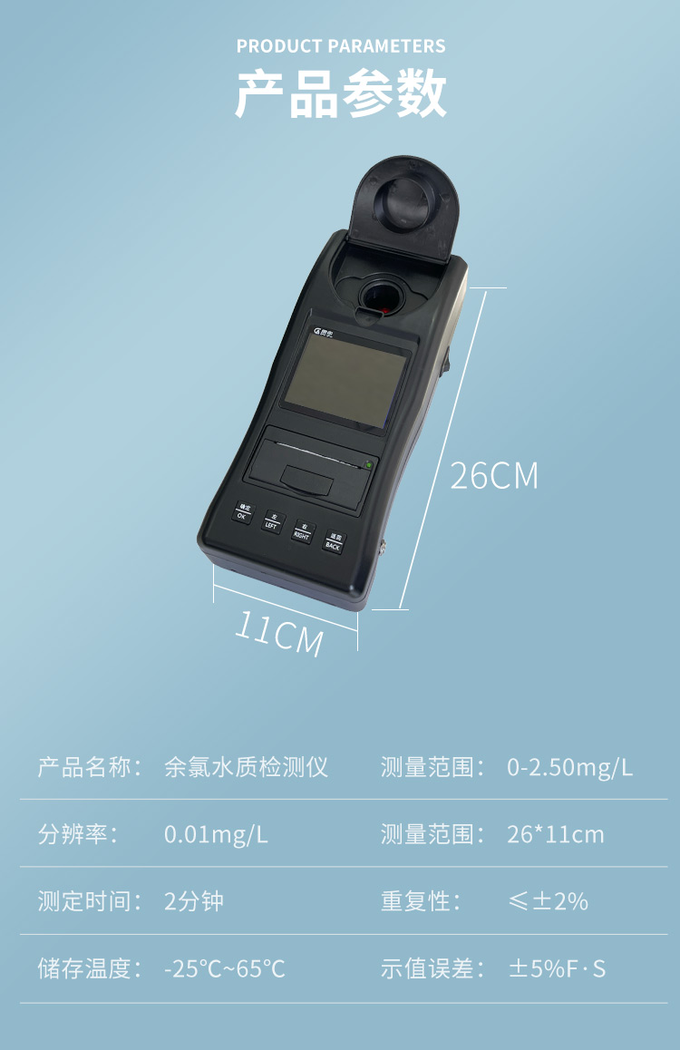 氯專項水質(zhì)檢測儀參數(shù)配置: